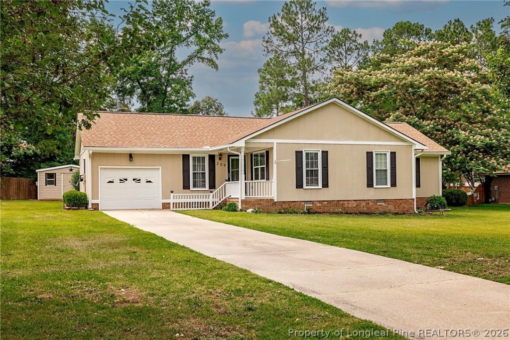Wonderfully maintained three-bedroom, two-bathroom home in the City of Raeford. The interior features an inviting foyer, a great room with a beautiful fireplace, a formal dining room, a charming kitchen with granite countertops, spacious bedrooms, a hall bathroom with a tile flooring, and a master bedroom with bathroom. The exterior features 2024 HVAC, beautiful landscaping, a covered front porch, a large wired storage shed, and a large back deck with an awning great for entertaining family & friends. Close to parks, schools, shopping, and dining. Dont miss out on this wonderful home and schedule a viewing today! Home is currently tenant occupied. Lease end date is 10/31/2026, rent rate: $1700/month